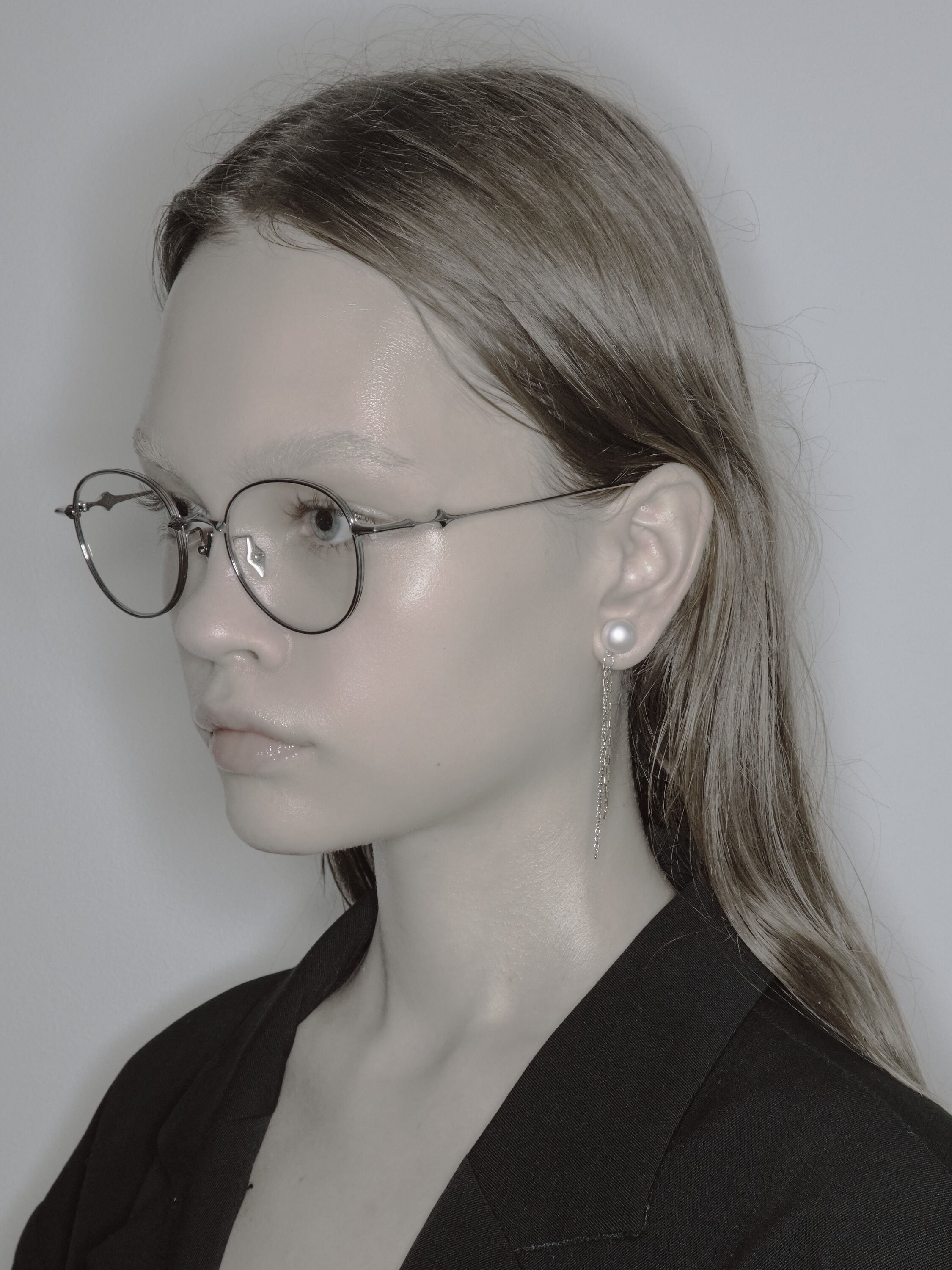動きに合わせてチェーンが揺れ、顔まわりを華やかに演出。